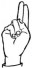 На ћирилици написано БОГИЊА ГОЧАНИН састоји се из 13 слова [?]. Исписано ћириличном једноручном азбуком за глувонеме: